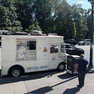 Ice cream van with idling motor, playing jingle near Central Park, Manhattan, New York City, USA