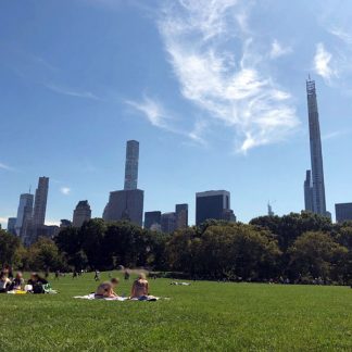 Meadow, Central Park, Manhattan, people chatting, laughing, guy selling beverages, easy sunny day, New York City, USA