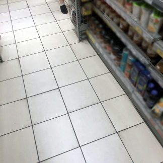 Supermarket, few people, talking and singing, fridge doors and register beeping, Poznan, Poland