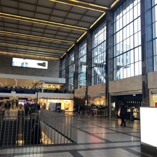 Train station, Vienna Westbahnhof, very high ceiling, escalators