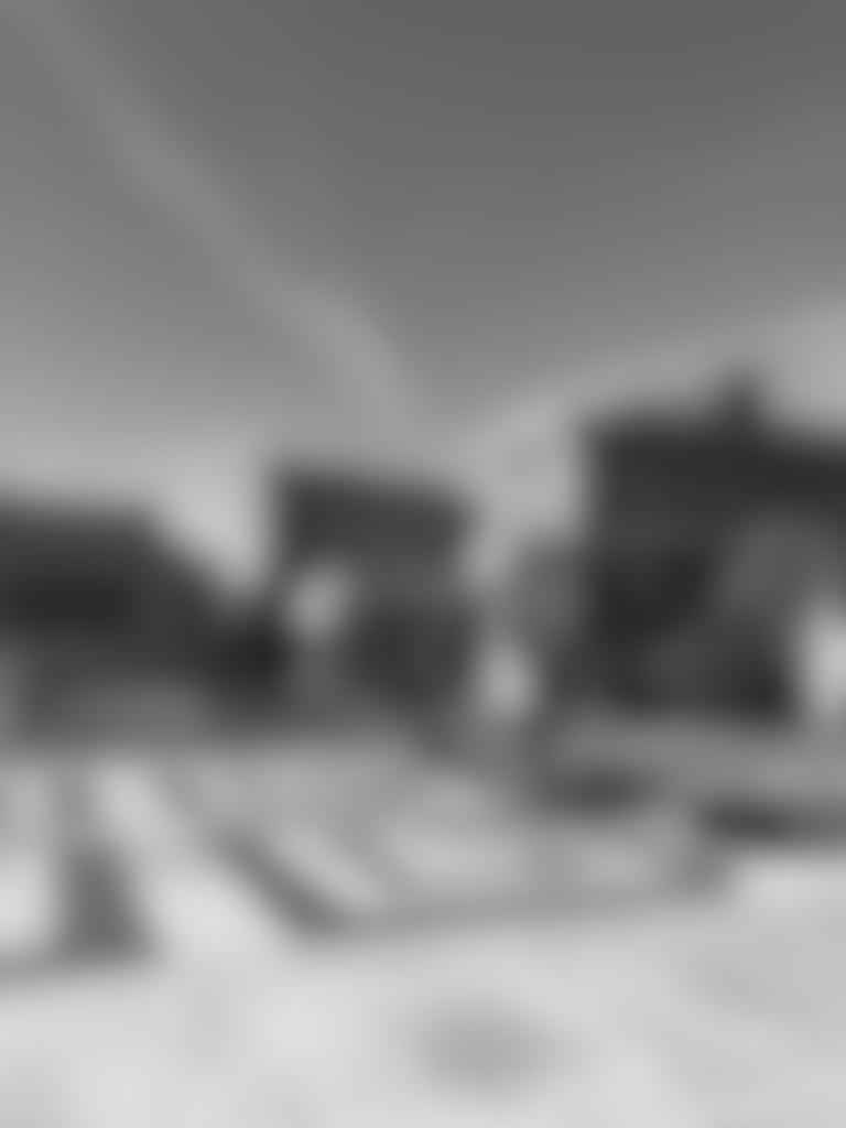University campus square, fountain, people walking by, talking, distant plane, students, New York City, USA